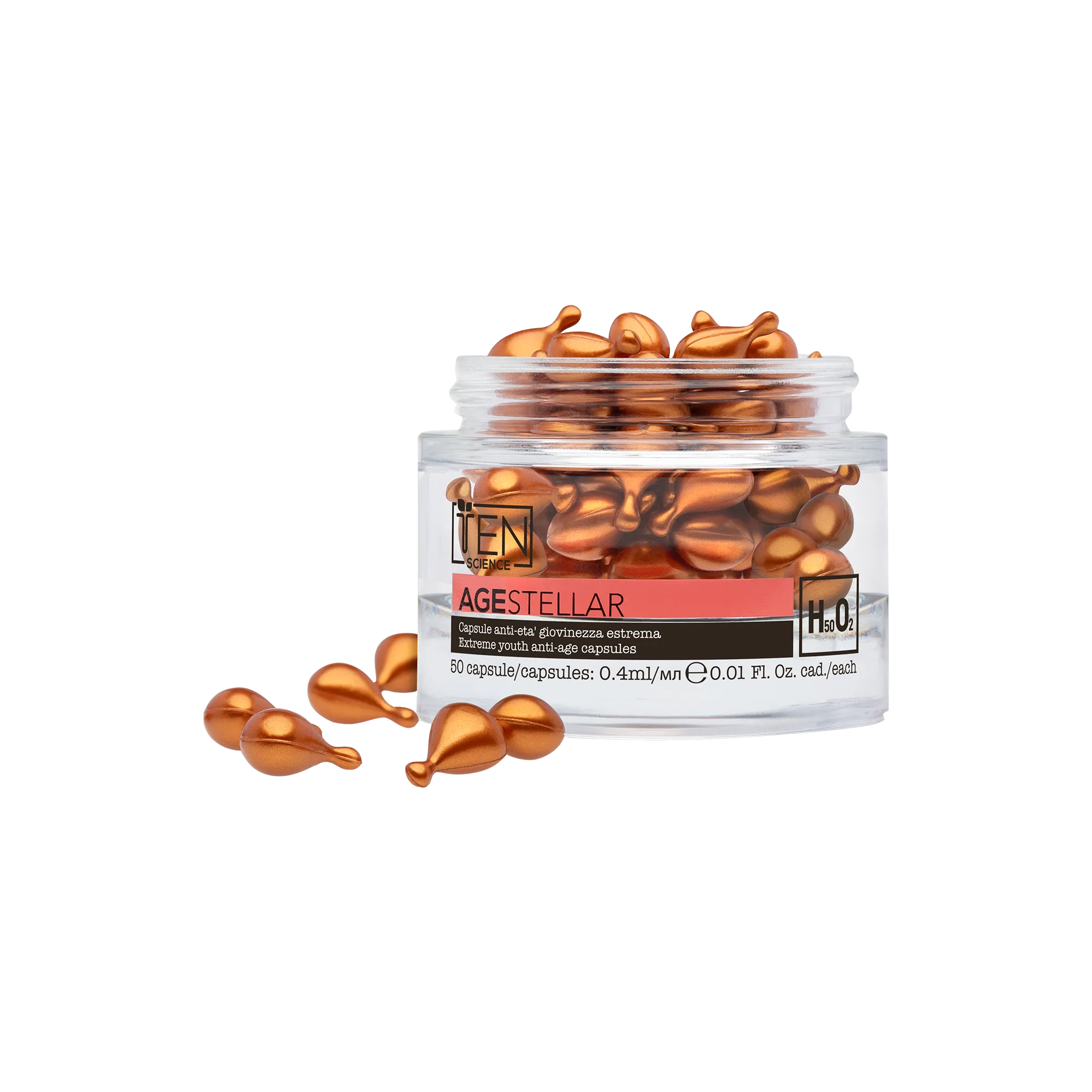 Preciosas cápsulas antiedad concentradas que actúan sobre la visibilidad de las arrugas.